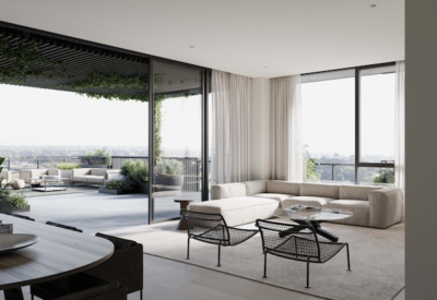 With its distinctive horseshoe shape offering sweeping vistas across verdant gardens and the city skyline, this property is set to become one of the defining buildings of Melbourne’s inner suburbs. Shaped by the legacy of its location, it stands as a timeless yet contemporary expression of style and sophistication.