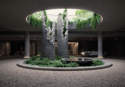 Softened with enveloping greenery that climbs across the building’s facade, a range of flowering botanicals flows between each level. Wrapping around the interior curves of the facade, a sculptural green canopy sits flush against the building to protect view lines, creating an inner-sanctum.