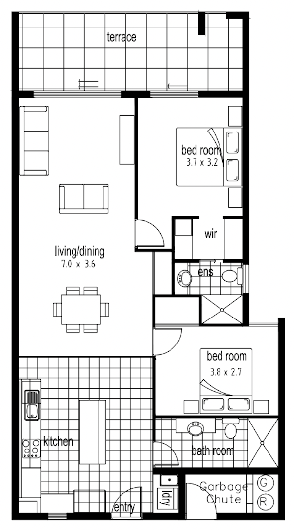 2 bedrooms, 2 bathroom apartment with 1 parking
