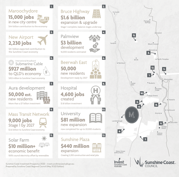 According to the Regional Australia Institute, the Sunshine Coast is predicted to be among the fastest growing cities over the next 14 years. With over $10 billion of infrastructure already underway, it’s also well on its way to boasting one of the highest job creation rates in Australia.