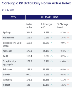 In contrast, the CoreLogic RP Data Home Value Index recorded a year-on-year increase over the 5 capital cities of just 5.2% with figures as outlined below.